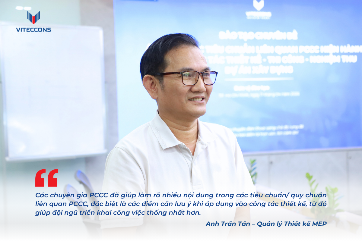 Thông qua các chương trình đào tạo chuyên môn, Viteccons tiếp tục thể hiện sự chủ động trong việc cập nhật và áp dụng quy định mới, chuẩn hóa quy trình và nâng cao năng lực đội ngũ trong quá trình triển khai dự án.