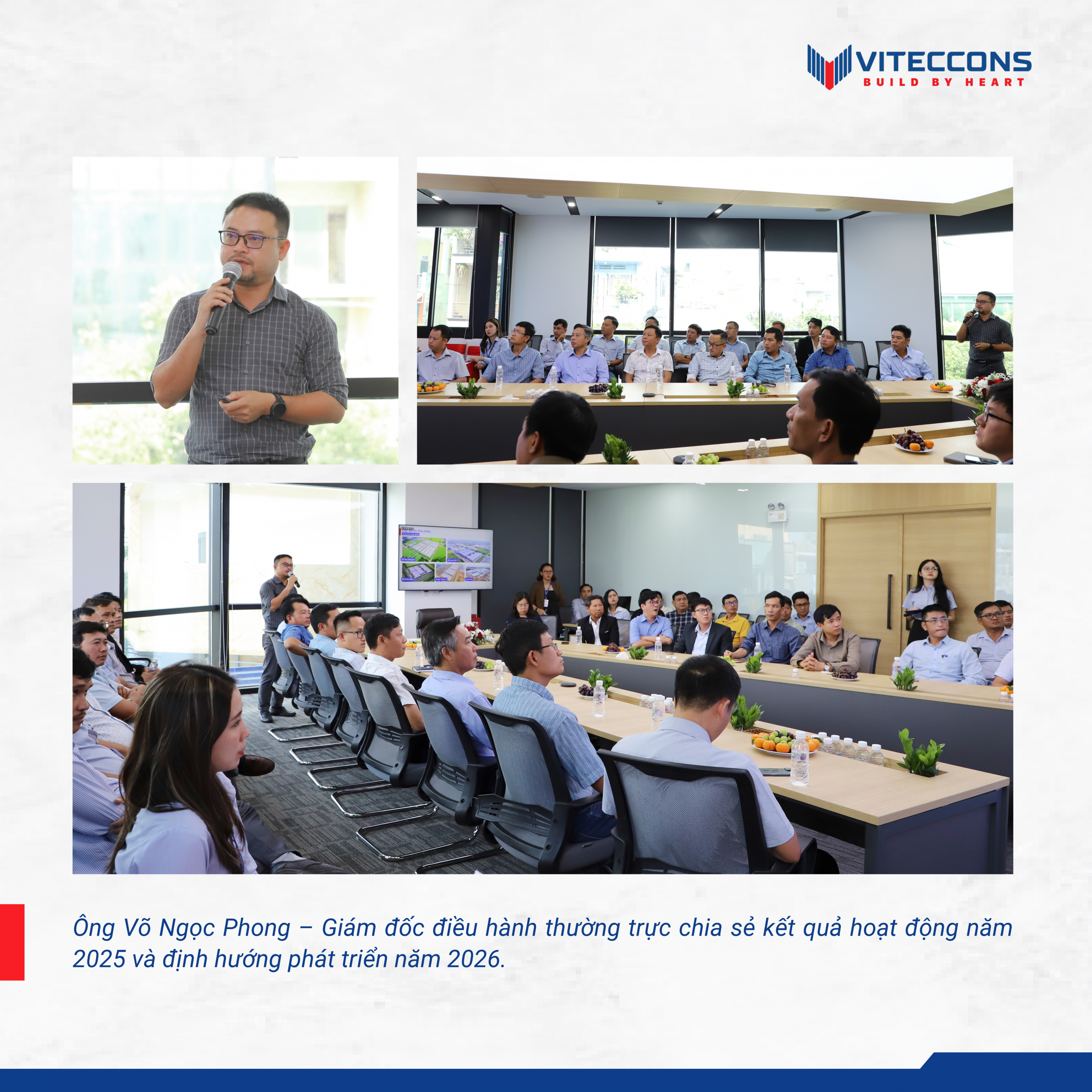 Phát biểu tại hội nghị, Ông Võ Ngọc Phong – Giám đốc điều hành thường trực Viteccons nhấn mạnh: “Trong bối cảnh ngành xây dựng nhiều biến động, Viteccons đặc biệt trân trọng sự tin tưởng và đồng hành của các Đối tác chiến lược – yếu tố quan trọng giúp Công ty duy trì ổn định và phát triển bền vững”.