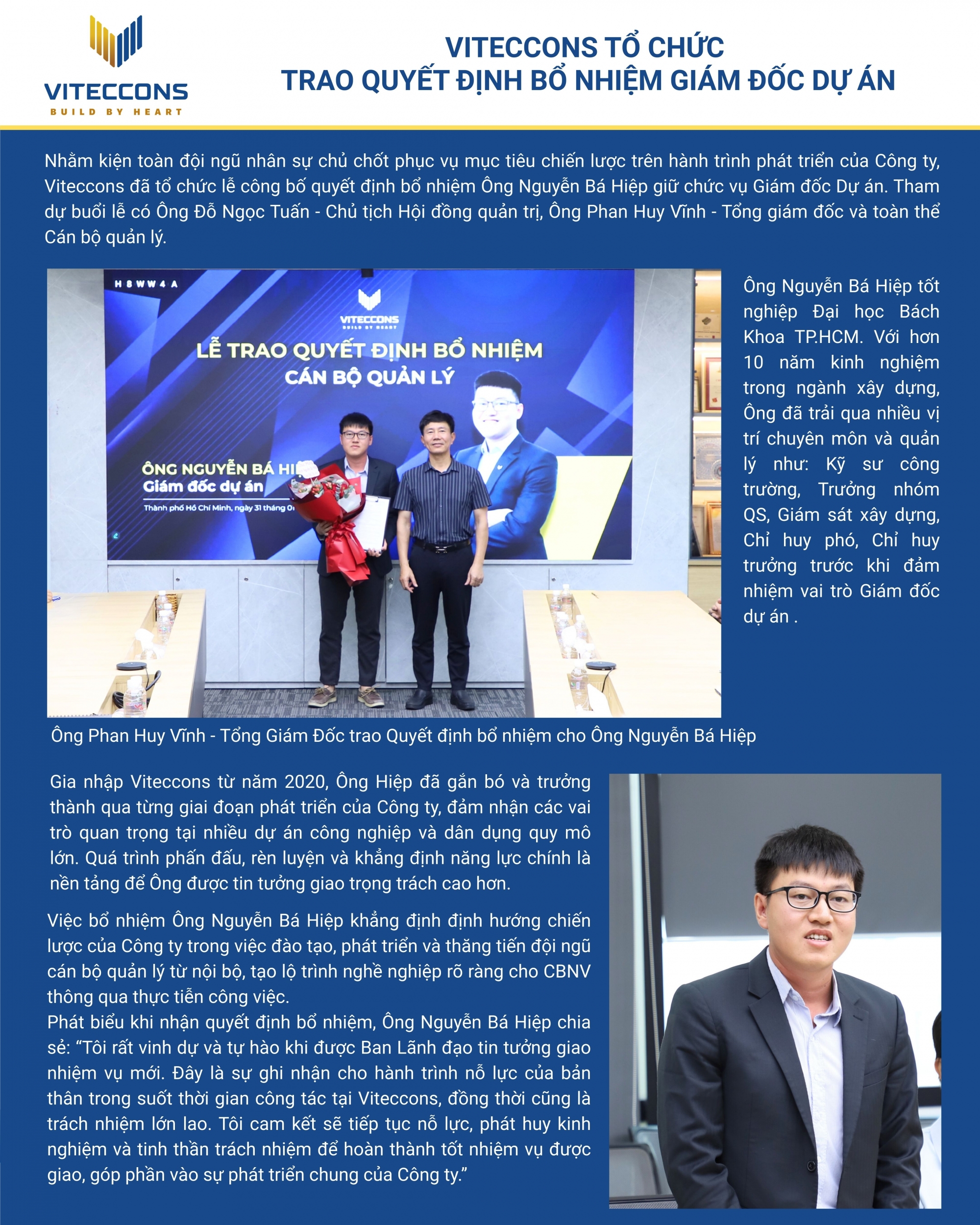 VITECCONS TRAO QUYẾT ĐỊNH BỔ NHIỆM GIÁM ĐỐC DỰ ÁN